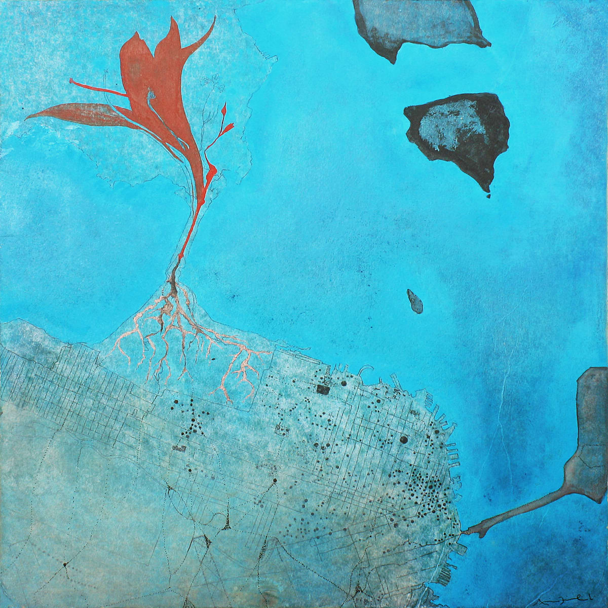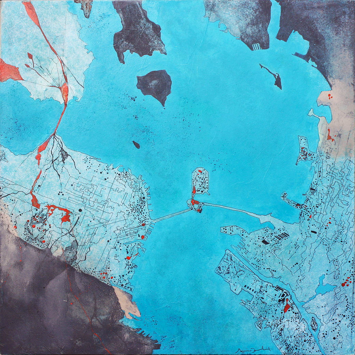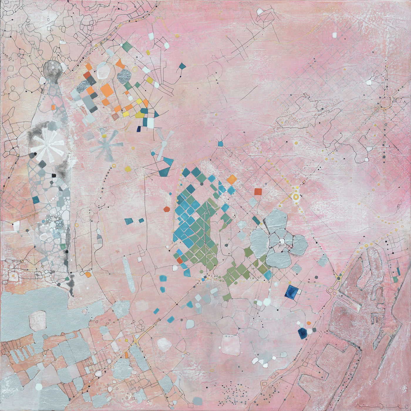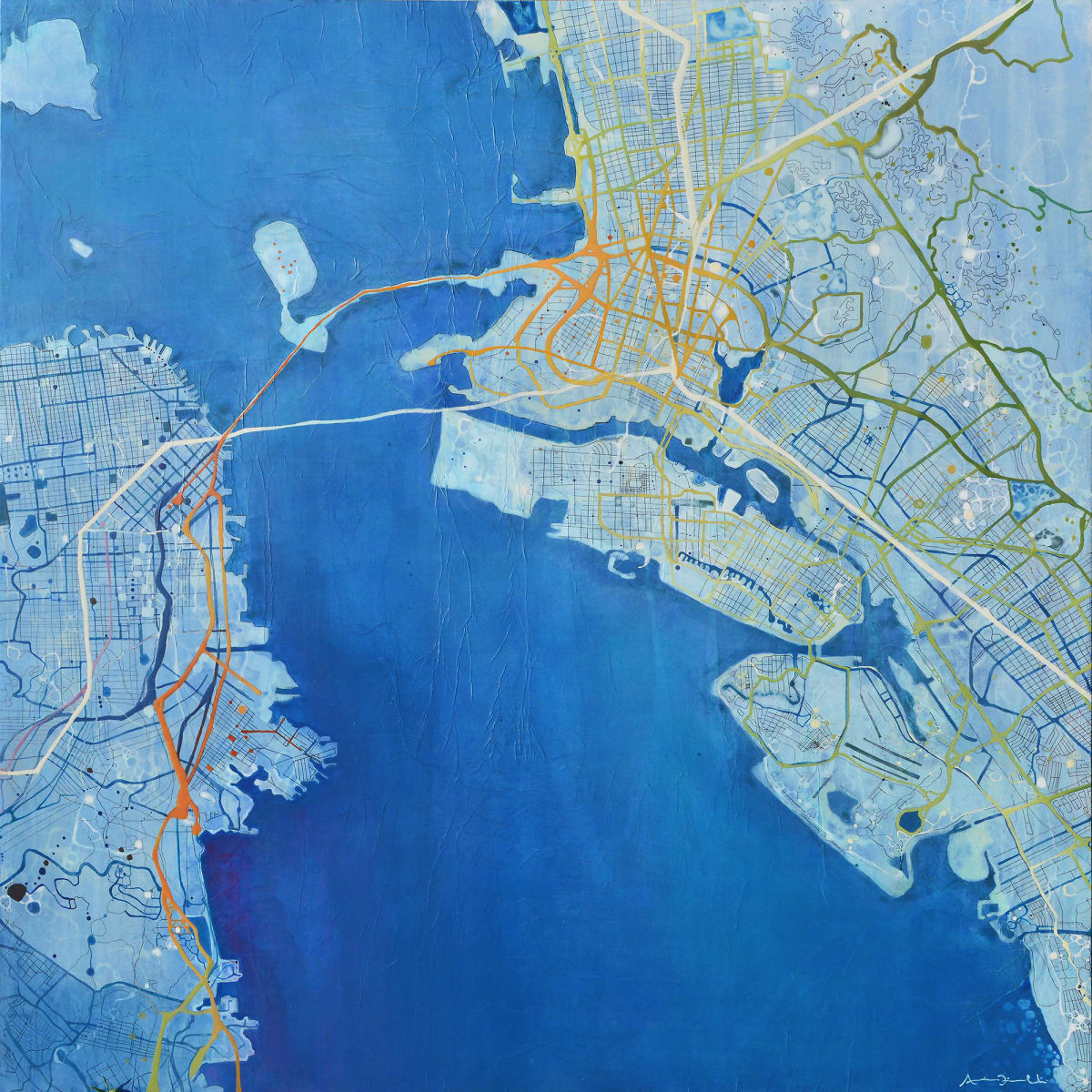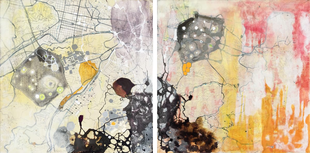 Pieces that unfold broken maps and liquid territories, this series reveals an intimate geography where the contours of the city dissolve into pigment, memory, and open-ended experience. An invisible energy—mapping the city as a living, vibrant, and unstable entity. Amid these reimagined landscapes, the artist confronts the ongoing search for a sense of place and its invisible echoes of energy. This series does not simply present altered maps—it offers constellations of identity, possible territories, and spaces where being and belonging are acts of continuous negotiation.____
